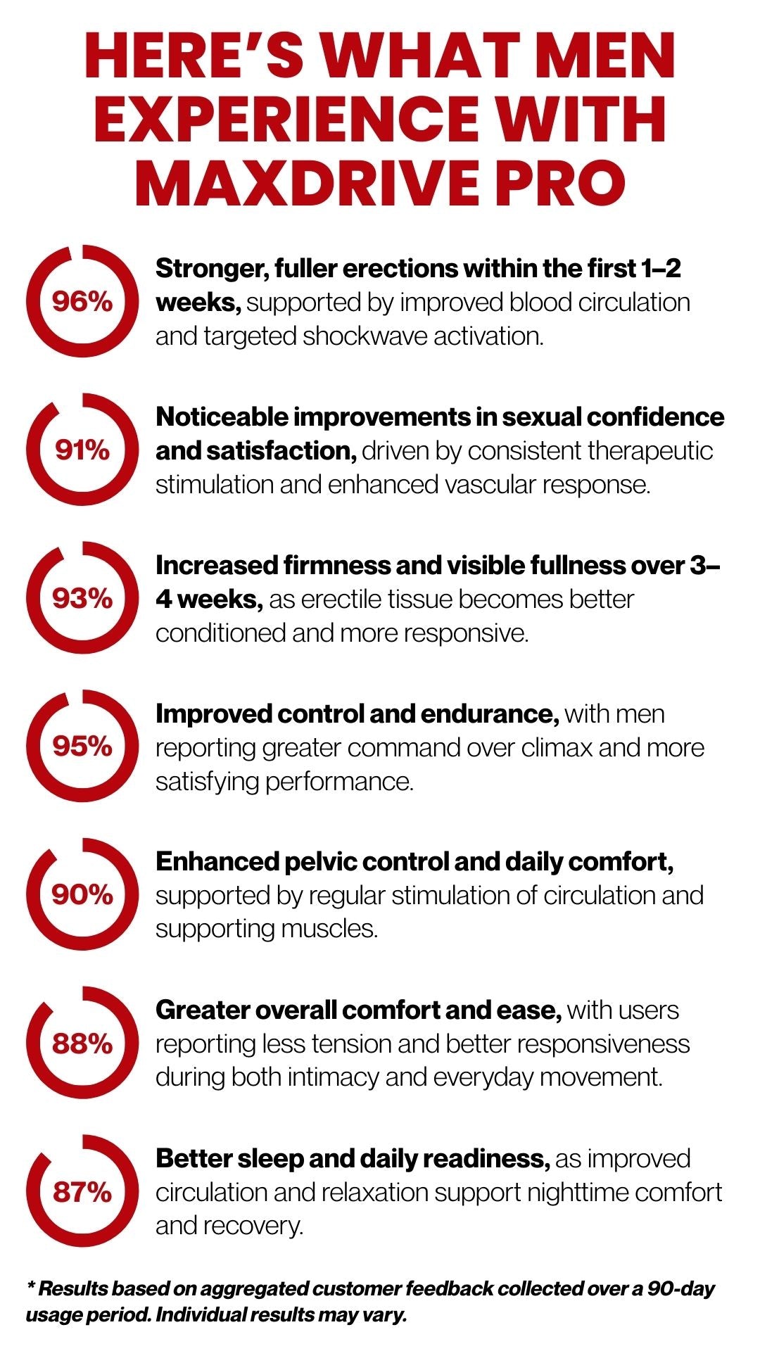 MaxDrive Pro™ has helped thousands of men naturally enhance performance, confidence, and stamina with a discreet, at-home approach. Engineered with clinical precision, the results speak for themselves.